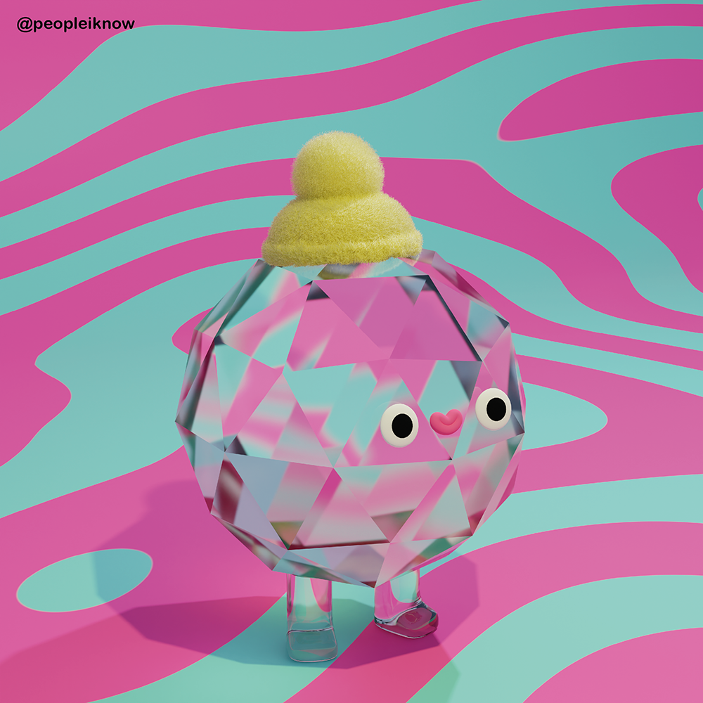 I wanted to explore geometric shapes in my 3D work so I came up with a simple premise - cute little gems, each with their own bespoke hat. I designed and created nine in total and here is a selection of my favourites.